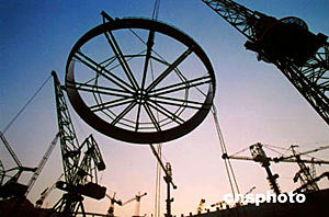 三峽電站右岸廠房十八號(hào)發(fā)電機(jī)組的引水壓力首節(jié)鋼管,六月二十八日晚八時(shí)順利吊裝就位。此鋼管內(nèi)徑為十二點(diǎn)四米,厚五十八毫米,首裝節(jié)重三十六噸。此項(xiàng)工程的順利完成對(duì)三峽三期工程大壩混凝土澆筑工序具有重要意義。作者:孫榮剛