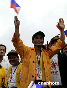 菲律賓國會(huì)經(jīng)過一個(gè)多月的檢票和辯論工作之后,六月二十四日正式宣布,現(xiàn)任總統(tǒng)阿羅約在五月十日舉行的總統(tǒng)選舉中,以多出一百一十二萬多張選票的優(yōu)勢,戰(zhàn)勝反對(duì)派總統(tǒng)候選人、著名影星費(fèi)爾南多·波,成功連任菲律賓第十四屆總統(tǒng)。