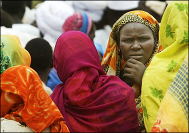 中新網(wǎng)7月5日電 據(jù)法新社報(bào)道,聯(lián)合國(guó)秘書長(zhǎng)安南近期親自前往蘇丹,視察當(dāng)?shù)氐碾y民營(yíng)。圖為來自達(dá)爾富爾地區(qū)的蘇丹難民正集中在法希爾城外的扎姆-扎姆難民營(yíng),等待與到訪的安南秘書長(zhǎng)面對(duì)面交流。(春風(fēng))