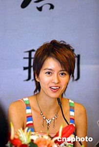 七月五日,香港大明星梁詠琪在河南省鄭州宣傳推銷新專輯。作者:慎重