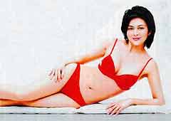 而以150萬港元分享第三位的便是朱茵和劉嘉玲兩位性感女星。劉嘉玲為瘦身廣告,首次以幾乎全裸,僅以水晶“點綴”、還有超性感三點式泳裝扮像示人。