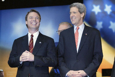 七月六日,美國民主黨副總統(tǒng)“選秀”塵埃落定?死锵嘀械,是在競選中與他斗爭時間很長、對他攻擊也特別厲害的對手——參議員愛德華茲。這兩位名字都叫約翰的參議員,將聯(lián)手在今年秋天與現(xiàn)任總統(tǒng)布什和副總統(tǒng)切尼爭奪白宮的寶座。