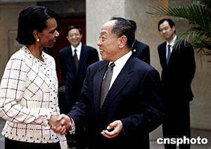 中新網(wǎng)7月8日電 中國外交部長李肇星今天同來訪的美國總統(tǒng)國家安全事務助理賴斯舉行會談。