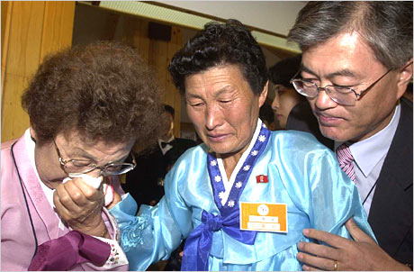 在此次活動(dòng)上,青瓦臺市民社會首席文在寅和故鄉(xiāng)為朝鮮興南的母親姜漢玉(音譯,77歲)與小姨姜炳玉(音譯,55歲)見了面。