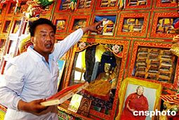 七月十二日,甘肅省甘南藏族自治州夏河縣藏醫(yī)院院長貢保扎西向來賓介紹該醫(yī)院藏醫(yī)藏藥學(xué)藏書館,他說,這二百八十冊藏醫(yī)藥學(xué)藥典記錄了近三千年藏醫(yī)藥臨床經(jīng)驗,對后來藏醫(yī)藥的發(fā)展起著重要作用。中新社記者:王麗南