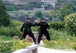 福州市永泰縣梧桐派出所警員冒著盛夏酷暑習(xí)練南拳,迎接福建公安系統(tǒng)“大練兵”。作者:鄭祚聲