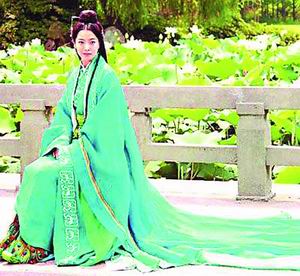金喜善的公主造型驚艷,從化妝間走到荷花池邊取景時,引來不少男士吹口哨,逗得“公主”笑容滿面,不過一開拍,金喜善即收起笑容,演繹一位滿懷心事的角色,坐在荷花池邊給畫師畫人像。