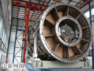 “網(wǎng)上河北行”采風(fēng)團參觀訪問秦皇島經(jīng)濟技術(shù)開發(fā)區(qū)中的哈爾濱動力設(shè)備股份有限公司,該公司展示了和美國GE公司組裝成功的中國第一臺大功率燃氣式發(fā)電機組,價值逾3億元人民幣。(秦欣攝)  中國第一臺大功率燃氣式發(fā)電機組,價值逾3億元人民幣。(劉鋼虎攝)