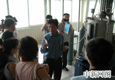 “網(wǎng)上河北行”采風(fēng)團參觀訪問秦皇島經(jīng)濟技術(shù)開發(fā)區(qū)中的華博晶體技術(shù)有限公司,該公司抓住以藍寶石為襯底材料的藍色、綠色和白色LED和LD產(chǎn)業(yè)快速發(fā)展契機,目前已發(fā)展為國內(nèi)最大的藍寶石生產(chǎn)基地。圖為該公司負責人向記者們展示產(chǎn)品加工過程。(秦欣攝)