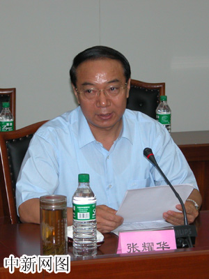 唐山市長(zhǎng)張耀華向第二屆“網(wǎng)上河北行”采風(fēng)團(tuán)的記者介紹唐山市情。(秦欣攝)