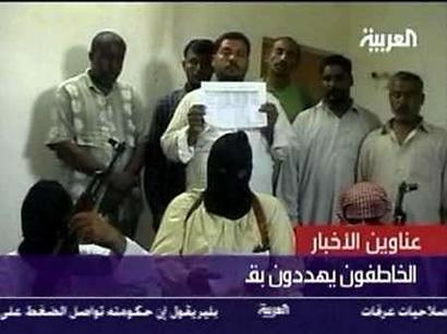 在阿拉伯電視臺當(dāng)天播放的一段錄像帶中,這6名被劫持的卡車司機(jī)站在3名坐著的蒙面武裝人員后面,一名人質(zhì)手持一張印有他們姓名、國籍、護(hù)照號以及卡車牌照號等內(nèi)容的紙張。