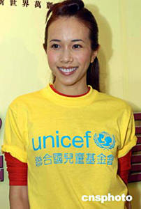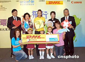 聯(lián)合國(guó)兒童基金會(huì)“教育大使”楊采妮7月22日在香港出席聯(lián)合國(guó)兒童基金會(huì)舉行之《寧夏童心夢(mèng)飛行》記者會(huì),楊采妮與梁詠琪、莫文蔚將攜手于八月前往內(nèi)地寧夏地區(qū)親善探訪當(dāng)?shù)貎和B?lián)合國(guó)兒童基金會(huì)香港委員會(huì)主席馮慶彪(右一)、副主席陳方安生(左二)與三位大使聯(lián)同贊助商舉行儀式,并呼吁各界踴躍捐款。作者:鄧慶樂
