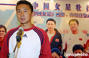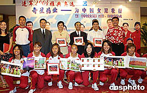 七月二十二日晚,《中國女足》畫冊、海報首發(fā)儀式在上海舉行,此舉也是與中國女足“牽手”十六年的奇星藥業(yè)為中國女足出征雅典奧運壯行。作者:湯彥俊