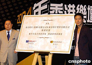 香港影視紅星黎明,七月二十八日出席東亞唱片制作有限公司在香港舉行的正式成立新聞?dòng)浾邥?huì),并正式加盟東亞唱片集團(tuán)公司。中新社記者:錢興強(qiáng)