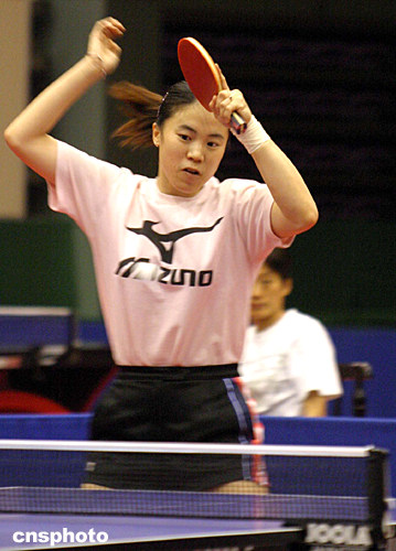 七月三十日上午,中國乒乓球女隊隊員王楠在河北正定乒乓球訓(xùn)練基地對抗賽中奮力拼殺,備戰(zhàn)奧運會。中新社記者:張勤