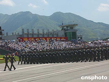 中新網(wǎng)香港八月一日電(記者尹丹丹)香港回歸七年來,駐港部隊今天首次公開閱兵,包括政府高官、社會名流和眾多第二屆立法會議員在內(nèi)的逾一萬五千名香港市民,在新界石崗軍營親睹了陸海空三軍逾三千官兵參加的隊列操演。