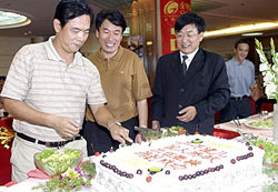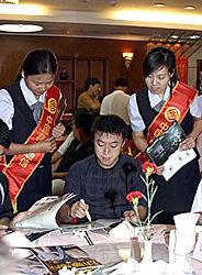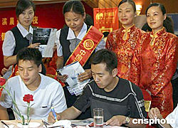 八月一日晚,秦皇島市人民政府,中信實業(yè)銀行,中國移動通信集團在海濱城市秦皇島為即將奔赴雅典的國家乒乓球隊領導和運動員舉行壯行酒會。中新社記者:張勤