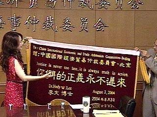 據(jù)臺(tái)灣媒體發(fā)自北京的報(bào)道說(shuō),李敖送給在北京因?yàn)楹么蚬偎径虺雒?hào)的李文的錦旗上,寫(xiě)著“你們的正義永不遲來(lái)”,來(lái)恭賀李文在北京打贏了第一場(chǎng)官司。