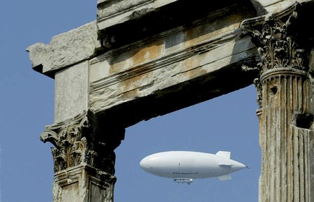 中新網(wǎng)8月3日電 據(jù)路透消息,7月24日,在雅典城上空的飛行測試中,一艘希臘飛艇正飛越著名的希臘古代建筑亞德里安拱門上空。今年8月13日至29日第28屆奧運會舉辦期間,這艘飛艇將盤旋在雅典上空,負責將雅典各比賽場館的即時場景圖片發(fā)送到雅典奧運會安全指控中心,以切實保障本屆奧運會的各項安全。