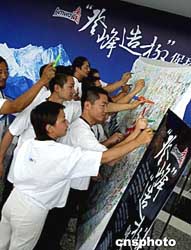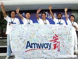 國家環(huán)保局九月將舉行“登峰造極”清掃珠穆朗瑪峰大型環(huán);顒樱怖(中國)日用品公司,八月四日在新疆安利營銷人員中舉行為中國環(huán)保做貢獻(xiàn)簽名活動。中新社記者:宋吉河