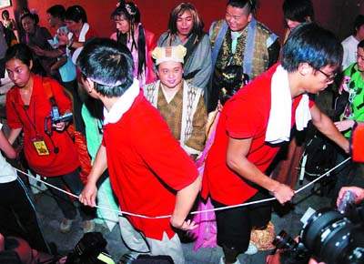 首次“觸電”的孔慶翔店小二造型曝光后,立馬成為焦點人物。當(dāng)孔慶翔走下舞臺時,立刻就被一大幫的記者圍住拍照,工作人員好不容易從人堆中將他拉出來,但沒走幾步又被記者團(tuán)團(tuán)圍住,最后工作人員只好臨時找來兩張凳子,讓他和薛家燕一起坐下來接受采訪,而保安就排成一道人墻在旁維持秩序。由于圍著采訪的記者實在太多,那套戲服可能又太厚,揮汗如雨的孔慶翔終于熬不住要上保姆車“嘆冷氣”,對于從踏足香港的第一步開始就已經(jīng)受到記者的追訪,孔慶翔坦言開始幾天并不習(xí)慣,但現(xiàn)在已經(jīng)習(xí)慣了。他表示,欣賞自己的優(yōu)點在于做事真誠,這也是現(xiàn)在年輕人缺少的東西。