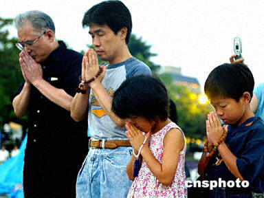 廣島市長(zhǎng)秋葉忠利在有4萬人參加的紀(jì)念活動(dòng)上發(fā)表了上述講話。日本首相小泉純一郎和遭受原子彈轟炸的幸存者以及死難者的家屬參加了紀(jì)念活動(dòng)。