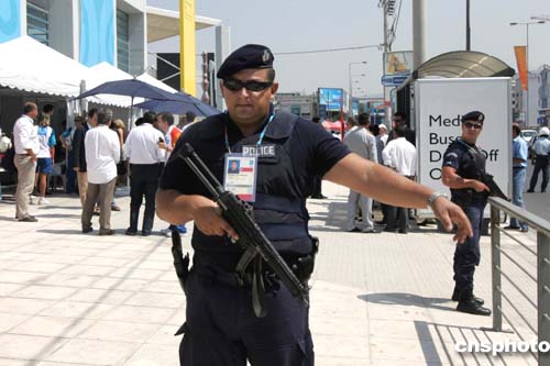 當?shù)貢r間8月6日下午,雅典奧運會的所有場館均提高了安保防范等級,在原有的警察防線外增加了荷槍實彈的軍警,以防恐怖襲擊。中新社記者:任晨鳴