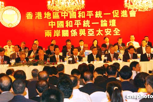 本次論壇由香港地區(qū)中國和平統(tǒng)一促進(jìn)會舉辦,主題是“兩岸關(guān)系與亞太安全”,議題包括中國現(xiàn)代化建設(shè)與國家統(tǒng)一大業(yè)的關(guān)系、“和平統(tǒng)一”方針最大的誠意和包容性、兩岸“三通”前景及對港臺關(guān)系的影響、解析臺灣問題與中美關(guān)系、“臺獨”勢力對亞太地區(qū)和平穩(wěn)定的影響、世界華人如何推動中國和平統(tǒng)一等十方面。來自兩岸、港澳及世界各地十七個國家的中國和統(tǒng)會組織代表,和僑領(lǐng)、專家、學(xué)者等約二百人在兩天的會期中,對當(dāng)前兩岸形勢各抒己見,共謀中國和平統(tǒng)一之道。