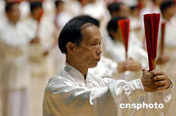 福建老年人體育協(xié)會組織的兩千多名太極功夫高手,8月8日上午,在福州舉行的“紀念鄧小平同志誕辰一百周年大會暨億萬老年人健身活動”中一展身手。會員遍及全省各地的福建“老體協(xié)”,現有會員一百三十九萬多人,是福建規(guī)模之最的社團。作者:鄭祚聲