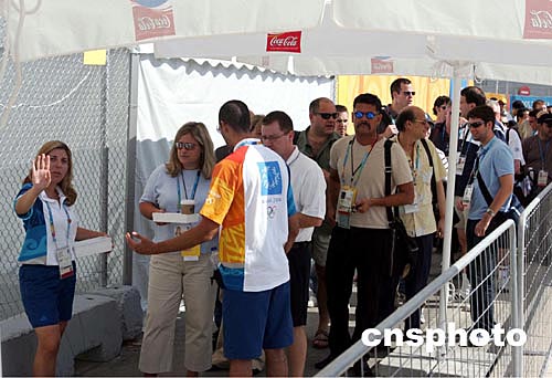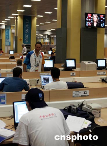 (當(dāng)?shù)貢r間)二○○四年八月八日,眾多中外記者進入希臘雅典奧運會新聞中心開始工作。中新社記者:毛建軍