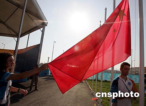 當?shù)貢r間8月9日上午,中國奧運代表團在雅典奧運村舉行隆重的升旗儀式。中新社記者:任晨鳴