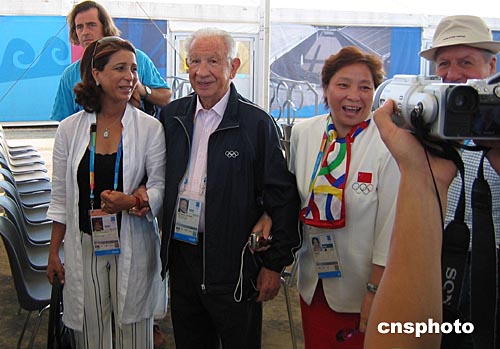 八月九日上午九時(雅典當?shù)貢r間),薩馬蘭奇看望出席升旗儀式的中國代表團。作者:李孝諄