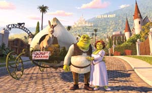 中新網(wǎng)8月11日電 據(jù)京華時報報道,集各種幽默元素于一體的“全球最賣座的3D動畫片”《怪物史瑞克2》,昨天起在全國上映!皹O盡嘲諷調(diào)侃之能事”是影評人給予這部動畫片的普遍評價。那么究竟有多少經(jīng)典影片片段被該片移花接木、有多少經(jīng)典形象被該片無情戲弄?敬請看《史瑞克2》爆笑解讀。