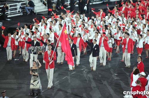 代表團(tuán)入場(chǎng)是開幕式的一幕高潮。