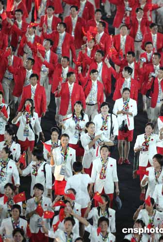 當(dāng)?shù)貢r間八月十三日晚,第二十八屆奧運會在希臘雅典開幕。圖為中國體育代表團以龐大陣容進入會場。中新社記者:毛建軍