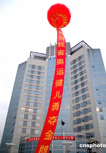 在八月十四日下午結束的雅典奧運會女子十米氣步槍決賽中,山東女射擊運動員杜麗奪得本屆奧運會首枚金牌。杜麗的母校山東省競技體育運動學校的師生扎制彩車在濟南街頭游行慶祝。作者:宋衛(wèi)東