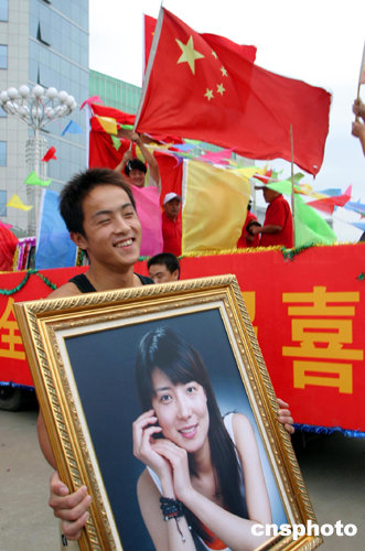 八月十四日十六點(diǎn)三十分,在雅典奧運(yùn)會(huì)女子十米氣步槍決賽中,山東籍選手杜麗奪得奧運(yùn)會(huì)第一枚金牌。喜訊傳來(lái),曾經(jīng)培養(yǎng)過(guò)她的山東省競(jìng)技體育學(xué)校的師生們揮舞著國(guó)旗歡呼慶祝。作者:王鋒