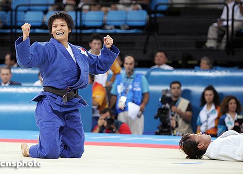 僅用了不到一分鐘的時(shí)間,身高一米五八的冼東妹就將二十三歲的日本選手橫澤由貴壓倒在地,并以“一本”戰(zhàn)勝對(duì)手,為中國隊(duì)添上第五金。