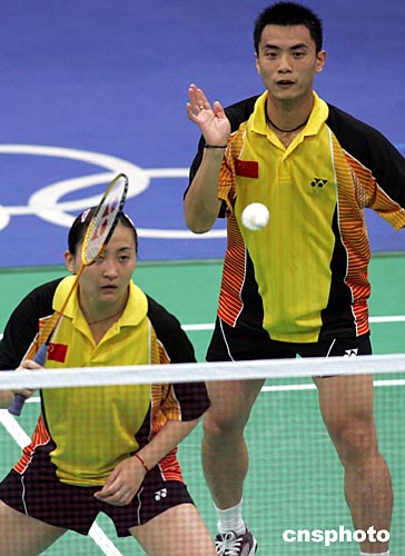 中國參加雅典奧運會羽毛球混合雙打的陳其遒、趙婷婷,當?shù)貢r間8月16日以0比2負于英國選手,無緣前四名。