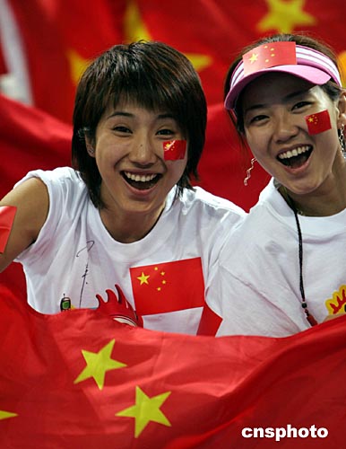 當(dāng)?shù)貢r(shí)間8月17日,中國(guó)男籃在以雅典奧運(yùn)會(huì)小組賽第二場(chǎng)比賽中以69比62艱難戰(zhàn)勝新西蘭隊(duì),兩名來(lái)自北京的女球迷到場(chǎng)高喊:“我愛(ài)你,中國(guó)男籃!”。作者:任晨鳴