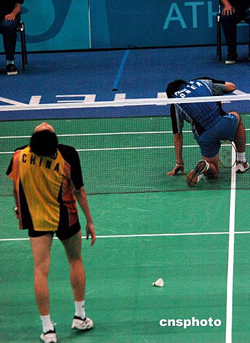 中新社雅典八月十七日電(記者沈晨)中國(guó)羽毛球隊(duì)又損一員大將,鮑春來(lái)在今日下午進(jìn)行的雅典奧運(yùn)會(huì)羽毛球男單第三輪比賽中,零比二不敵韓國(guó)選手樸泰映慘遭淘汰。中國(guó)羽毛球隊(duì)副總教練鐘波賽后認(rèn)為:“鮑春來(lái)輸球很正常,因?yàn)樗谛睦、技術(shù)等方面都遜色于對(duì)手樸泰映!