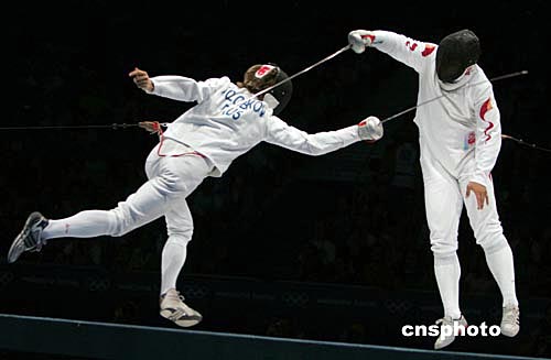 當(dāng)?shù)貢r(shí)間8月17日晚,中國劍客王磊在雅典奧運(yùn)會(huì)男子重劍半決賽中擊敗俄羅斯選手獲得決賽權(quán)。中新社記者:任晨鳴