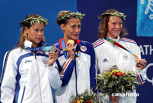 當(dāng)?shù)貢r(shí)間八月十七日晚,羅馬尼亞選手卡美麗婭獲得雅典奧運(yùn)女子二百米自由泳金牌。中新社記者:毛建軍
