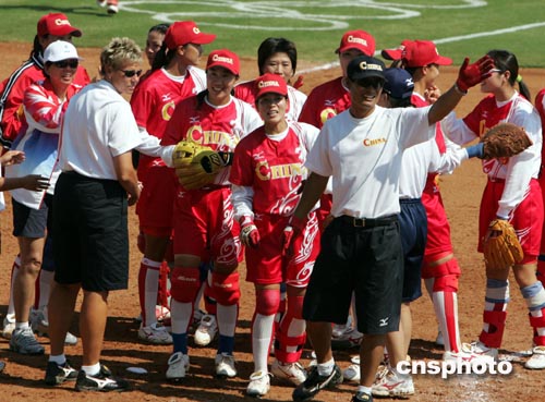 中新社雅典八月十九日電 中國女壘今天在奧運(yùn)會預(yù)賽中與第六個對手中國臺北隊(duì)相遇,中國隊(duì)?wèi){借在第五局中贏得的一分取得比賽的勝利,目前戰(zhàn)績?yōu)槿齽偃?fù),繼續(xù)保有晉級四強(qiáng)的希望。