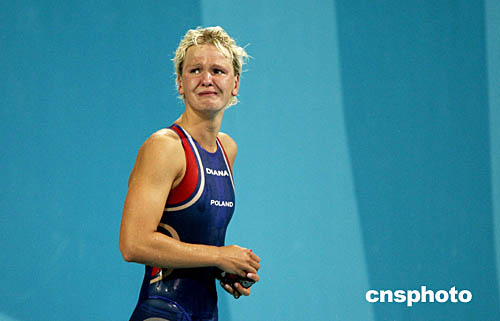在當(dāng)?shù)貢r間8月18日舉行的女子200米蝶泳決賽中,波蘭選手杰德捷澤扎克獲得冠軍。圖為她在得知自己奪冠后流下激動的眼淚。