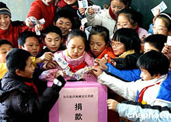 圖:江蘇省小學生為印度洋海嘯災區(qū)捐款