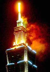 據(jù)臺(tái)“中國(guó)時(shí)報(bào)”報(bào)道,6日晚間7點(diǎn),臺(tái)北消防人員接報(bào)101大樓89層處有大量白煙冒出,但經(jīng)他們到現(xiàn)場(chǎng)察看后,研判可能只是純粹云層飄過(guò)造成的錯(cuò)覺(jué)而已。但這幅畫(huà)面也意外形成一幅臺(tái)北101有趣的景像。