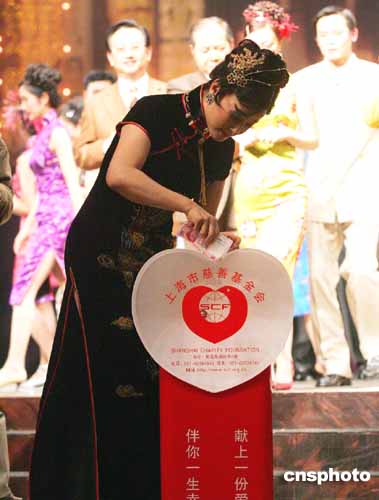 一月六日晚,由劉曉慶領(lǐng)銜主演的大型歌舞話劇《金大班的最后一夜》在上海上演。演出之后,劉曉慶和演藝人員向海嘯災(zāi)區(qū)捐款。作者:潘索菲