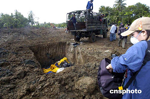圖:班達(dá)亞齊義工協(xié)助埋葬死難者尸體