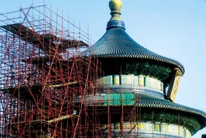 中新網1月11日電 北京天壇核心景觀祈年殿古建筑近日正式開工修繕,整個工程計劃于2006年9月1日前竣工。北京日報報道,屆時將恢復其康乾盛世時的歷史原貌。這是自1971年大修后,祈年殿首次進行較大范圍的修繕。